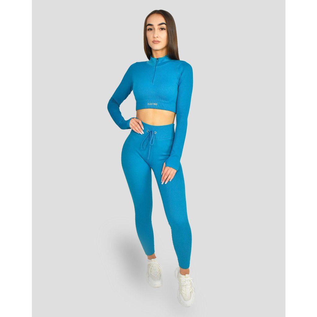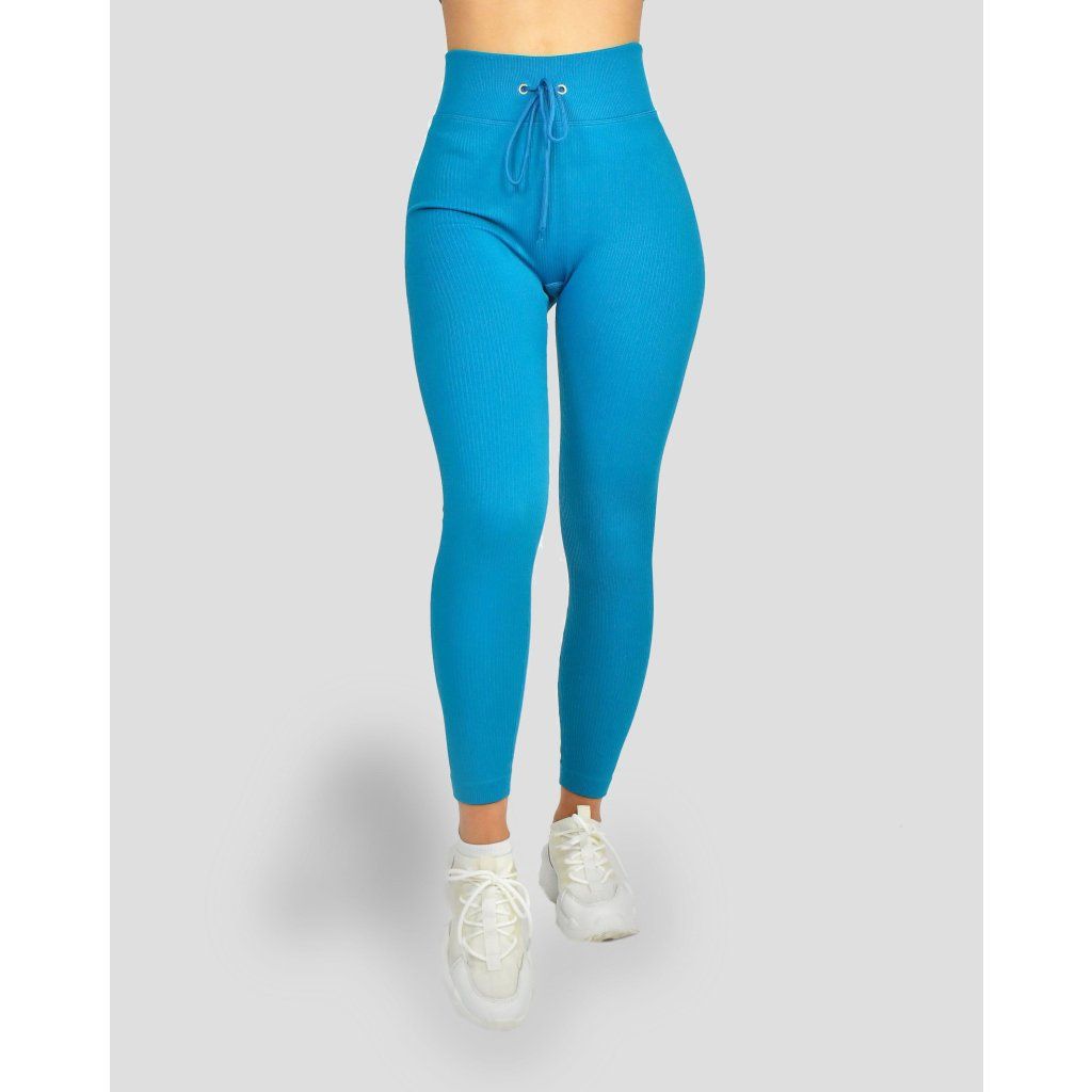 Vrúbkované Legíny so šnúrkou VARIED, modrá – Klomio